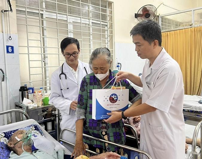 Bác sĩ Bệnh viện Đa khoa khu vực Long Khánh tặng quà cho bệnh nhân đang điều trị tại bệnh viện