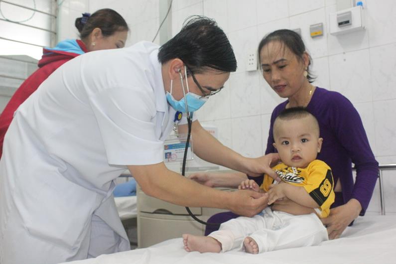 BS Dũng khám bệnh cho bệnh nhi mắc bệnh đường tiêu hóa điều trị tại khoa