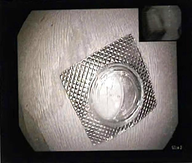 Vỏ thuốc có các cạnh sắc nhọn được bác sĩ lấy ra khỏi thực quản bệnh nhân.