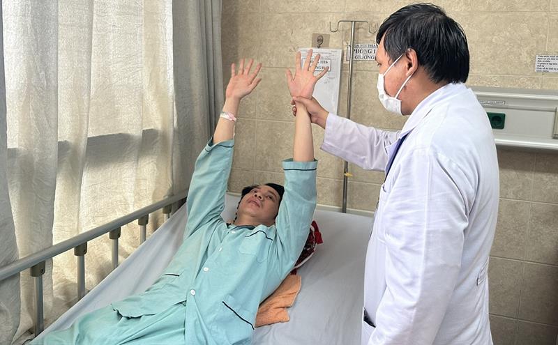 Bác sĩ kiểm tra tình trạng vận động tay của bệnh nhân