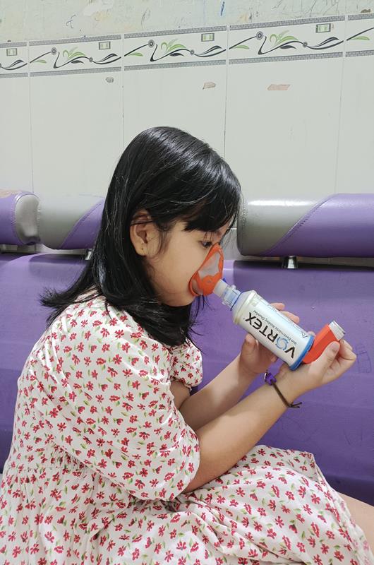 Duy trì xịt thuốc theo chỉ định của bác sĩ trong nhiều năm, con của chị T. rất ít khi bị lên cơn hen. Tuy nhiên, thời điểm dịch Covid-19 bùng phát, chị T. không đưa con đi tái khám và không duy trì việc xịt thuốc nên bé bị lên cơn hen trở lại. Lo lắng cho tình trạng sức khỏe của con, chị T. vội đưa con đi tái khám.
