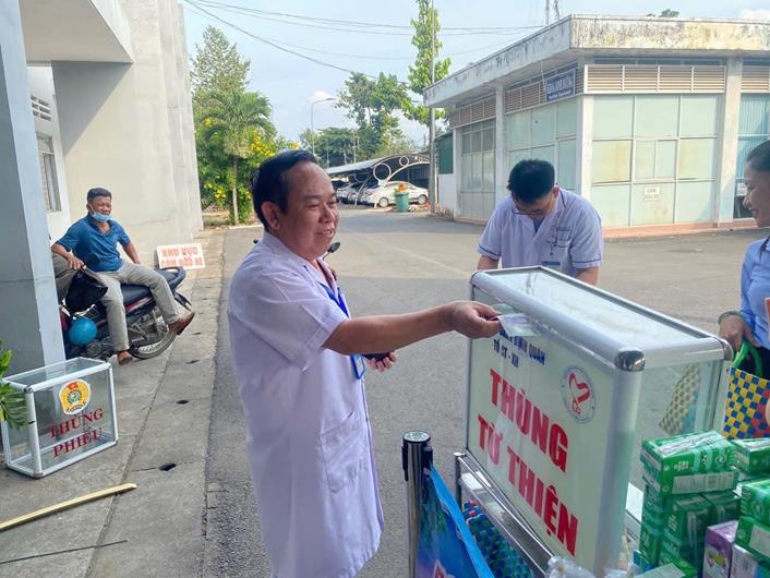 Cán bộ, nhân viên bệnh viện quyên góp tiền để thực hiện phiên chợ 0 đồng