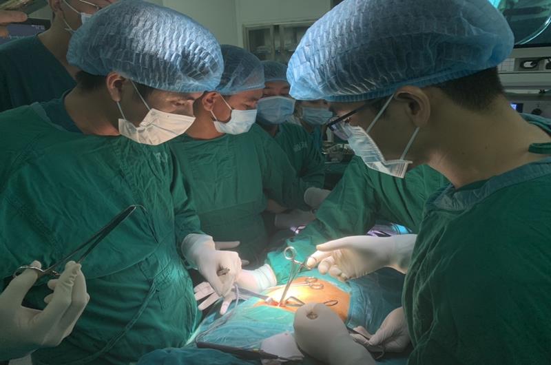 Các bác sĩ Bệnh viện Đa khoa Đồng Nai thực hiện ca mổ để chuẩn bị thực hiện kỹ thuật lọc màng bụng điều trị suy thận giai đoạn cuối.