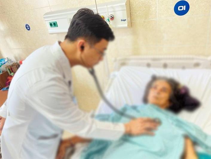 Bác sĩ Tuấn Anh khám sức khỏe cho bệnh nhân sau ca phẫu thuật tim