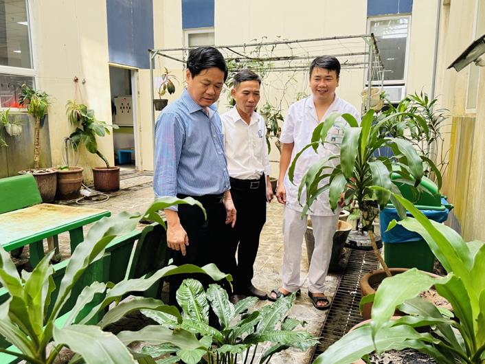 Đoàn khảo sát của Sở Y tế khảo sát không gian xanh tại khoa Phục hồi chức năng, Bệnh viện Đa khoa Đồng Nai.