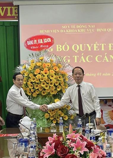 Ban Giám đốc Bệnh viện đa khoa khu vực Định Quán chúc mừng bác sĩ Phạm Văn Tuyến.