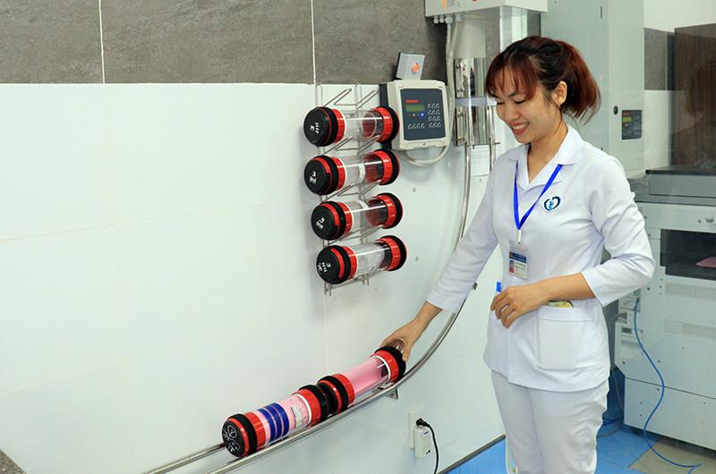TS-BS Nguyễn Sĩ Tuấn, Trưởng Khoa vi sinh cho biết, hệ thống vận chuyển mẫu xét nghiệm bằng khí nén có nhiều ưu điểm, mang đến nhiều tiện ích cho cả bệnh nhân và nhân viên y tế. Theo cơ chế vận hành, hệ thống vận chuyển mẫu xét nghiệm bằng khí nén được cấu trúc thiết bị đơn giản, dễ dàng quản lý và sử dụng. Nhân viên y tế chỉ cần bỏ mẫu xét nghiệm và giấy chỉ định vào hộp sau đó để vào hệ thống rồi ấn mã số đã được cài đặt sẵn cho các khoa phòng, với những bước đơn giản này những mẫu bệnh phẩm sẽ được vận chuyển đến nơi xét nghiệm một cách nhanh chóng, chỉ trong vòng 5 giây.