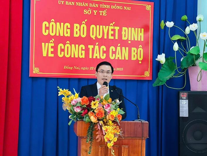 (CTT-Đồng Nai) - Bác sĩ CKII Lê Quang Trung, Giám đốc Sở Y tế vừa trao quyết định bổ nhiệm chức danh Phó Giám đốc Bệnh viện Da liễu Đồng Nai cho bác sĩ CKII Đào Tân Hiệp - Trưởng khoa Khám bệnh, Bệnh viện Đa khoa Đồng Nai. Thời hạn bổ nhiệm 5 năm, kể từ ngày 3-2-2025.