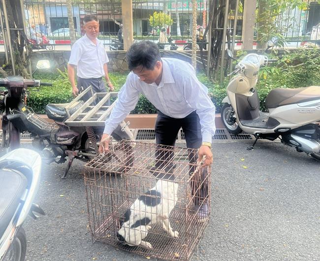 Một con chó hoang bị bắt nhốt sau khi cắn người tại sân Sở Tài nguyên và Môi trường