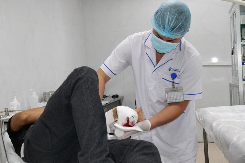 Nhân viên y tế cấp cứu cho một bệnh nhân bị tai nạn giao thông
