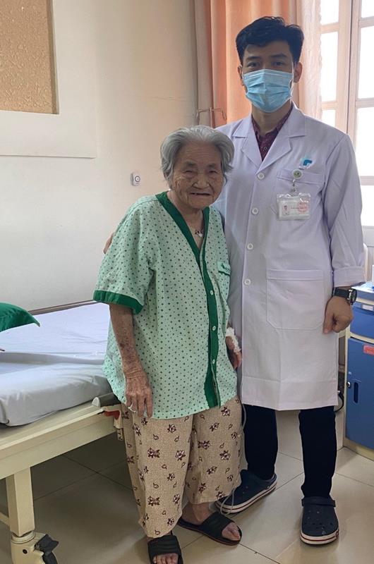 Cụ C. đã đứng dậy được, vận động nhẹ nhàng sau ca phẫu thuật vài ngày