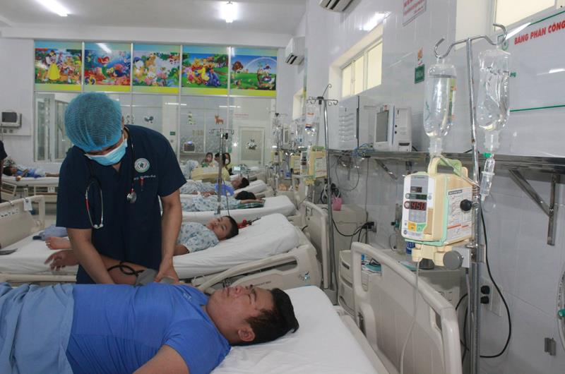 BS Nguyễn Trọng Nghĩa, Phó Giám đốc Bệnh viện Nhi đồng Đồng Nai cho biết, các khoa của bệnh viện đang điều trị cho gần 100 bệnh nhân bị sốt xuất huyết, tuổi từ 4-15 tuổi, trong đó có gần 30 bệnh nhân bị sốt xuất huyết nặng, rơi vào trạng thái sốc, phải điều trị hồi sức tích cực.