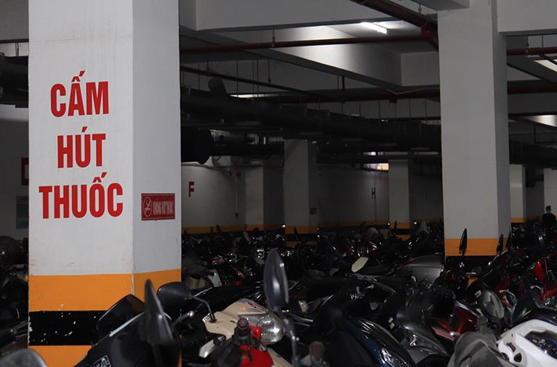 Tại nhà xe của các bệnh viện cũng treo bảng cấm hút thuốc trên các cột tường để tuyên truyền, nhắc nhở mọi người không được hút thuốc lá