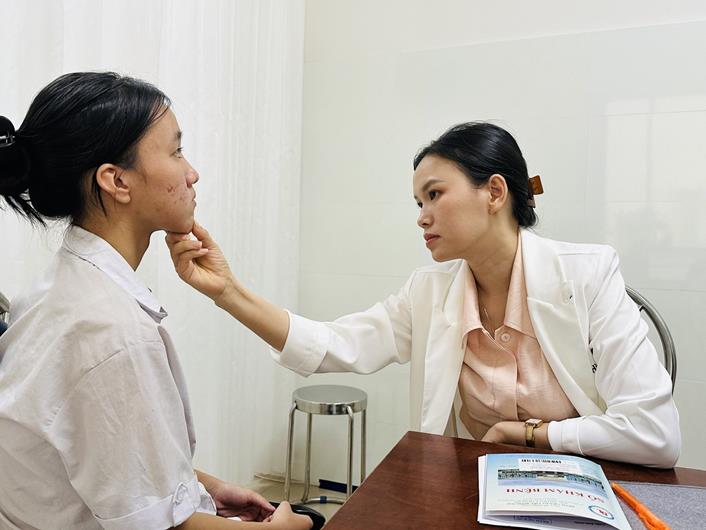 Bác sĩ da liễu khám và tư vấn cho bệnh nhân