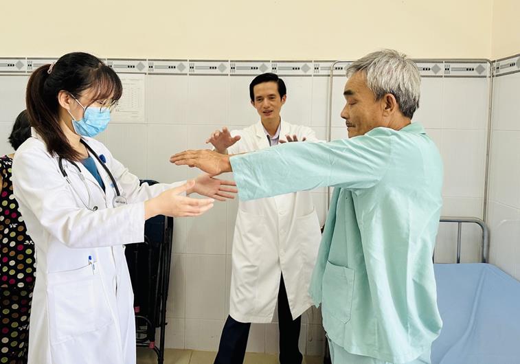 Bác sĩ hướng dẫn bệnh nhân tập vận động
