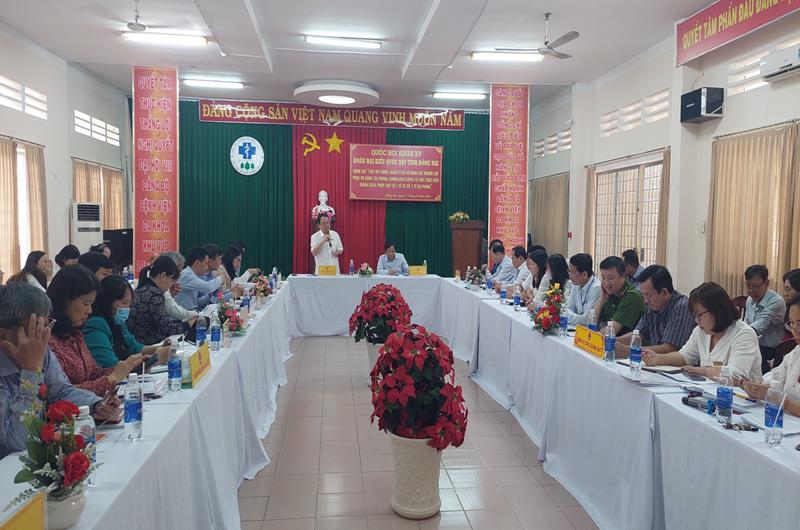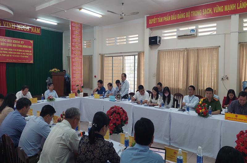 Lãnh đạo Bệnh viện Đa khoa khu vực Long Thành báo cáo với đoàn giám sát
