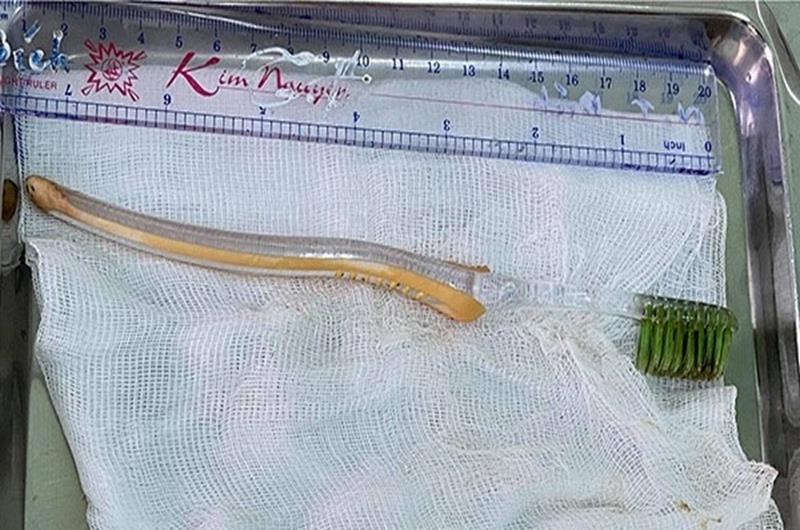 Trước đó, các bác sĩ Bệnh viện Nhi đồng Đồng Nai cũng đã gắp một chiếc bàn chải đánh răng từ dạ dày bệnh nhi.
