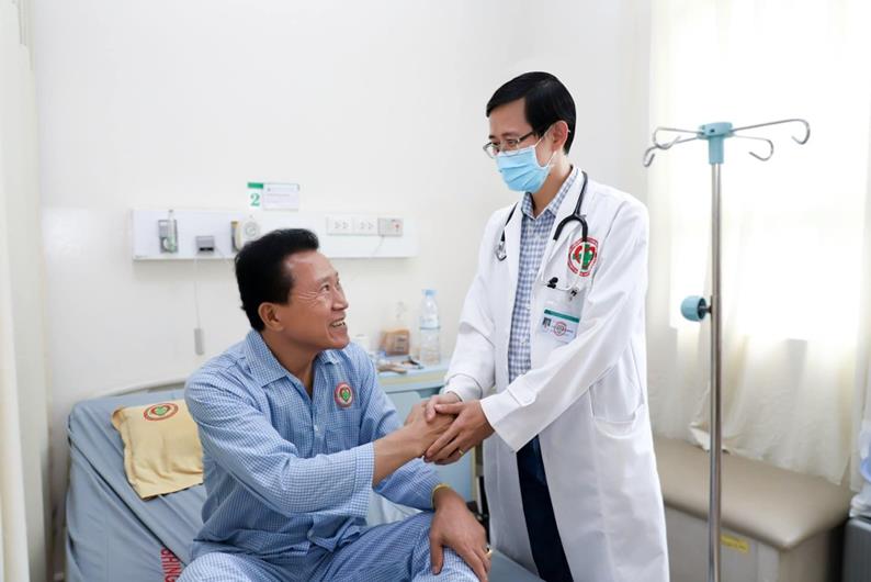 Bệnh nhân cảm ơn bác sĩ trước khi được xuất viện