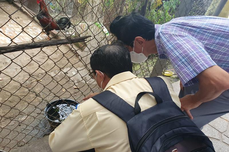 Nhân viên y tế soi kiểm tra chỉ số véc tơ liên quan đến dịch sốt xuất huyết trên địa bàn H.Trảng Bom