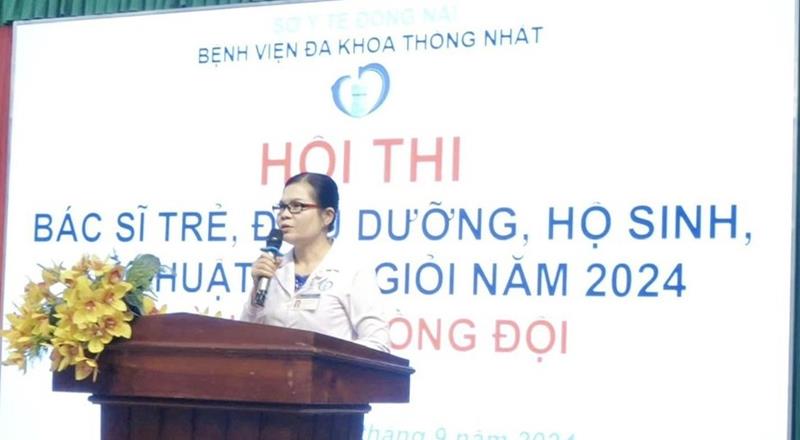 Phó giám đốc phụ trách Bệnh viện đa khoa Thống Nhất Nguyễn Thị Kim Loan phát biểu khai mạc hội thi