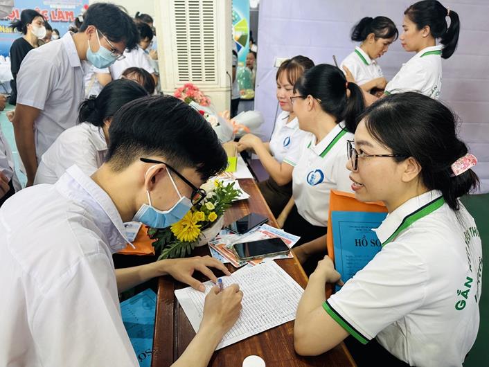 Sinh viên nộp hồ sơ để tuyển vào Bệnh viện Đa khoa Thống Nhất