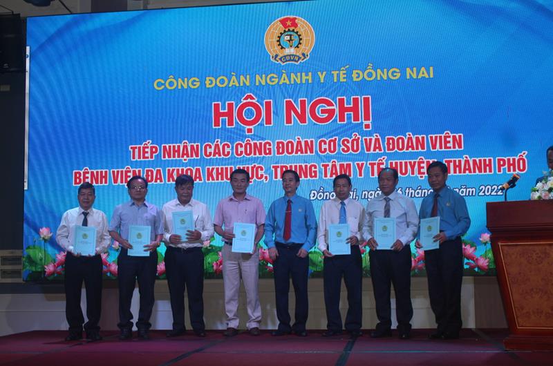 Công đoàn ngành Y tế Đồng Nai vừa tổ chức hội nghị tiếp nhận Công đoàn cơ sở (CĐCS) và đoàn viên từ các bệnh viện đa khoa khu vực và trung tâm y tế tuyến huyện, thành phố. Chủ tịch LĐLĐ tỉnh Nguyễn Thị Như Ý, Phó Chủ tịch Công đoàn Y tế Việt Nam Vũ Anh Tuấn đã tham dự.
