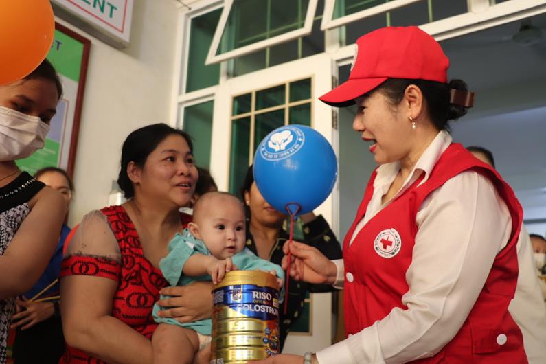 Hội Chữ thập đỏ tỉnh đến trao quà cho bệnh nhi đang điều trị tại Bệnh viện Nhi đồng Đồng Nai