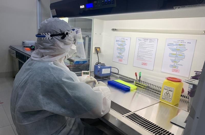 Nhân viên y tế làm xét nghiệm Covid-19 trong phòng thí nghiệm