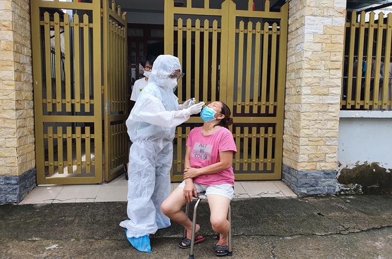 Nhân viên y tế thực hiện nhiệm vụ lấy mẫu xét nghiệm Covid-19 cho người dân