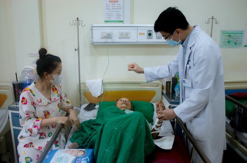 BS CKI.Hoàng Đức Mạnh kiểm tra sức khỏe cho cụ T. sau ca phẫu thuật
