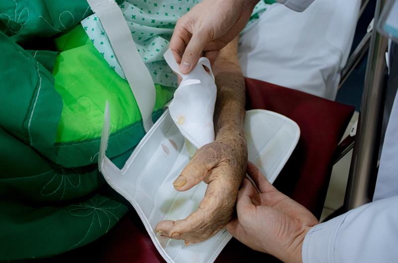 Vết thương ở tay phải của cụ T. đã được phẫu thuật thành công