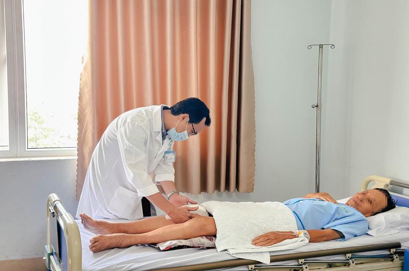 BS Trí kiểm tra chân cho bệnh nhân sau ca phẫu thuật