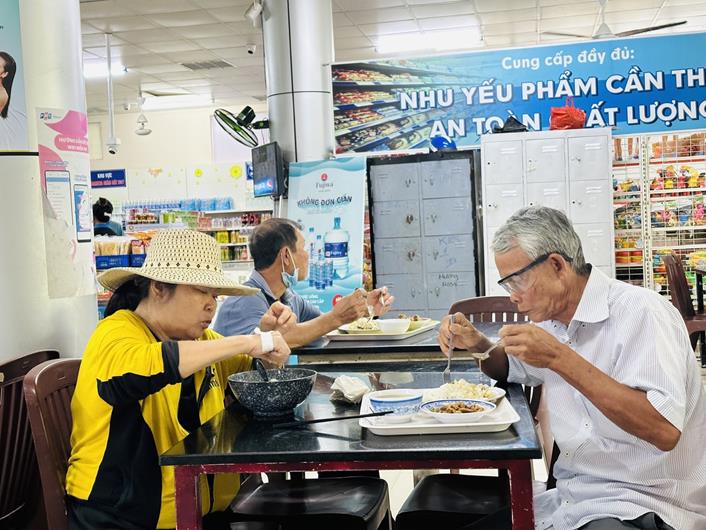 Bệnh nhân và người nhà bệnh nhân sử dụng các phần ăn tại căn tin Bệnh viện Đa khoa khu vực Long Khánh