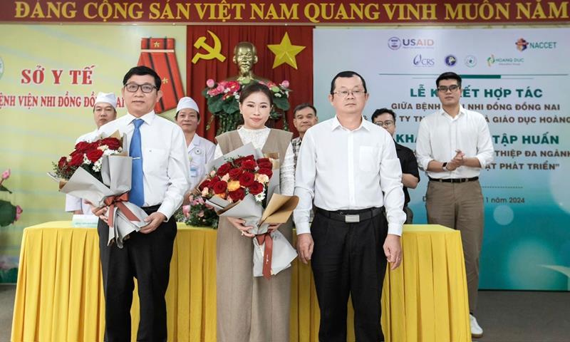 (CTT-Đồng Nai) - Bệnh viện Nhi đồng Đồng Nai và Công ty TNHH Tư vấn và Giáo dục Hoàng Đức (thành phố Biên Hòa) đã cùng ký kết biên bản ghi nhớ hợp tác về phát triển các hoạt động nghiên cứu, đào tạo và thực hành chuyên môn trong lĩnh vực phục hồi chức năng cho trẻ em khuyết tật.