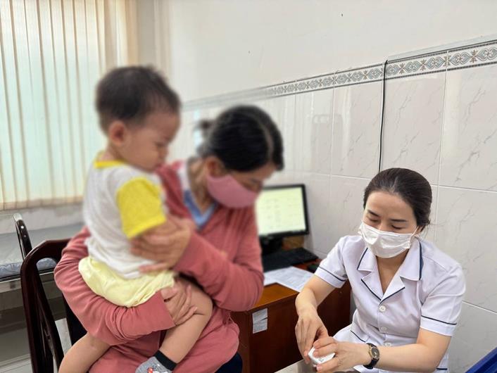 Người dân đưa trẻ đi tiêm vaccine phòng bệnh cúm tại Trung tâm Kiểm soát bệnh tật tỉnh.