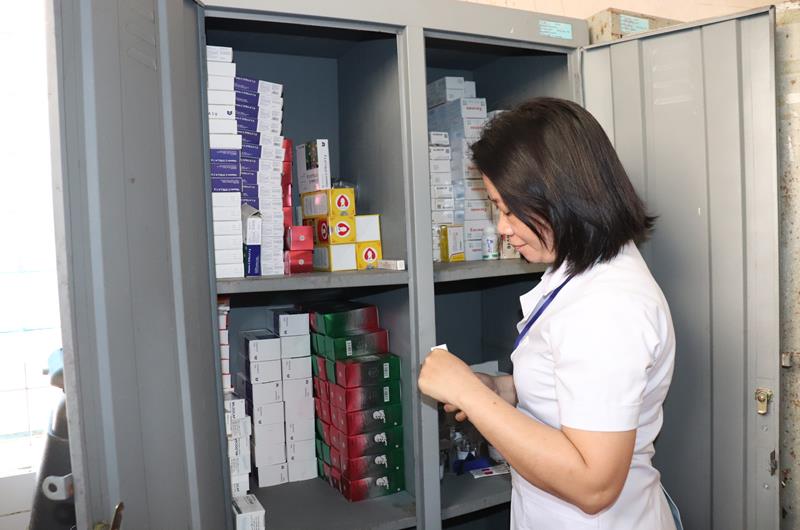 Nhân viên y tế của trạm y tế xã Sông Nhạn soạn thuốc để phát cho bệnh nhân