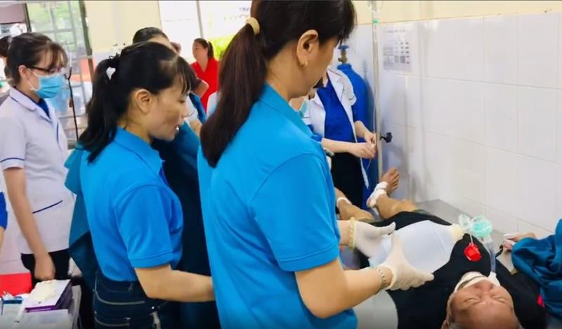 Đáng lưu ý, ngay trong buổi sáng khi đoàn y, bác sĩ của Bệnh viện Nhi đồng Đồng Nai đang khám bệnh từ thiện, có một trường hợp là ông C.T.T., 64 tuổi, ngụ xã Cẩm Đường được người nhà đưa đến cấp cứu tại trạm y tế xã trong tình trạng tím tái, ngưng tim, ngưng thở.