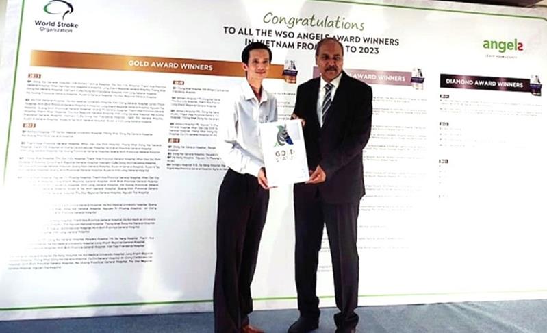 BS Nguyễn Quốc Thành, Trưởng Khoa Nội thần kinh, Bệnh viện Đa khoa khu vực Long Khánh nhận chứng chỉ tiêu chuẩn Vàng của Hội Đột quỵ thế giới