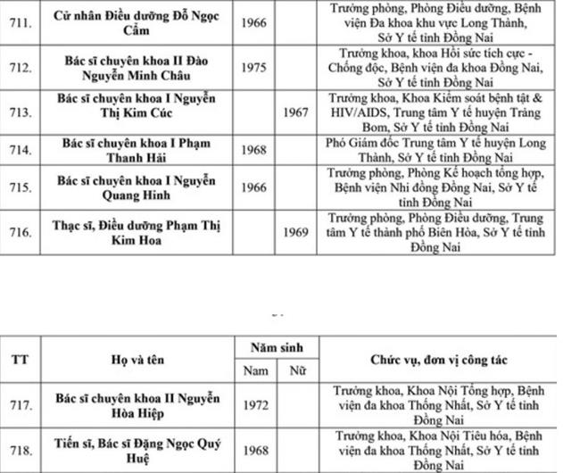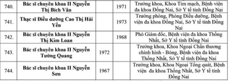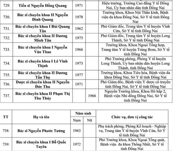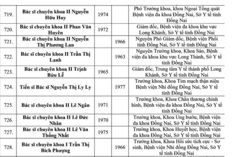 Danh sách 34 cá nhân của tỉnh Đồng Nai được xét tặng danh hiệu Thầy thuốc Ưu tú lần thứ 14