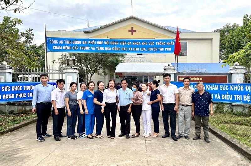 Bệnh viện Đa khoa Thống Nhất phối hợp với Công an tỉnh vừa tổ chức khám bệnh, tư vấn sức khỏe, cấp phát thuốc miễn phí cho gần 300 người dân thuộc diện hộ nghèo, gia đình chính sách, người dân tộc thiểu số trên địa bàn xã Đắk Lua, H.Tân Phú. Tổng chi phí đợt khám bệnh lần này khoảng 25 triệu đồng.