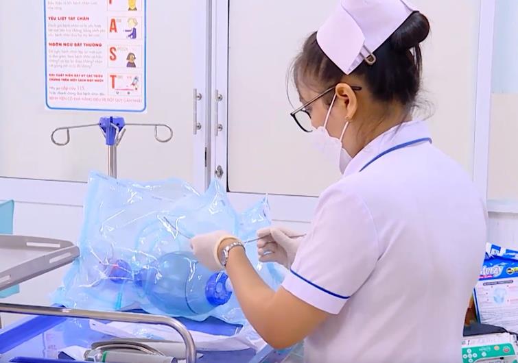 Nhân viên y tế chuẩn bị dụng cụ để can thiệp cho bệnh nhân bị nhồi máu cơ tim cấp