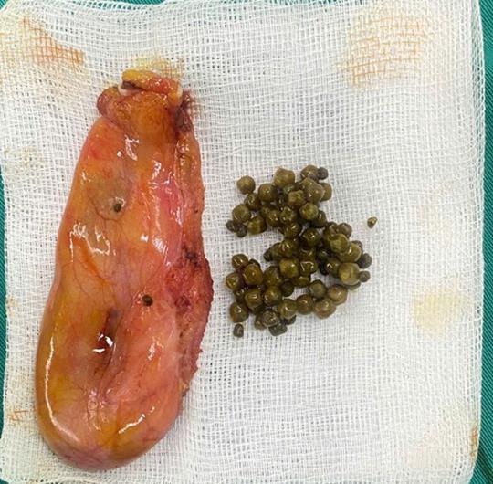 Mặc dù bệnh nhân đã điều trị nhiều nơi nhưng không thuyên giảm vì được chẩn đoán viêm dạ dày. Sau quá trình thăm khám và thực hiện siêu âm ổ bụng, các bác sĩ phát hiện trong túi mật bệnh nhân chứa số lượng lớn sỏi. Sau khi được tư vấn kỹ càng, người bệnh được chỉ định phẫu thuật nội soi cắt túi mật.