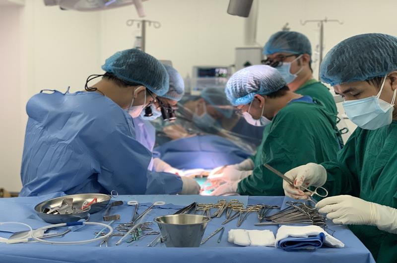 TS-BS.Võ Tuấn Anh, Trưởng Khoa Ngoại lồng ngực - tim mạch Bệnh viện Đa khoa Đồng Nai (bìa trái) cùng đồng nghiệp thực hiện một ca phẫu thuật tim