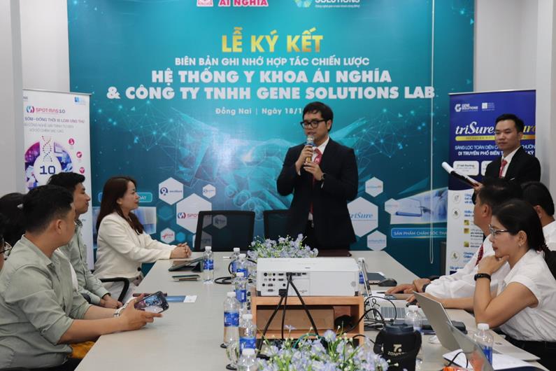 Phát biểu tại buổi lễ, ThS - BS Nguyễn Đình Trí, Phó Tổng Giám đốc chuyên môn hệ thống Y khoa Ái Nghĩa nhấn mạnh: Việc hợp tác với Gene Solutions để ứng dụng các xét nghiệm gen vào thực tiễn khám chữa bệnh là bước đi quan trọng giúp nâng cao chất lượng dịch vụ y tế; mang lại nhiều giá trị thực tiễn cho bệnh nhân, không chỉ trong lĩnh vực Sản - Nhi mà còn mở rộng ra nhiều lĩnh vực khác.