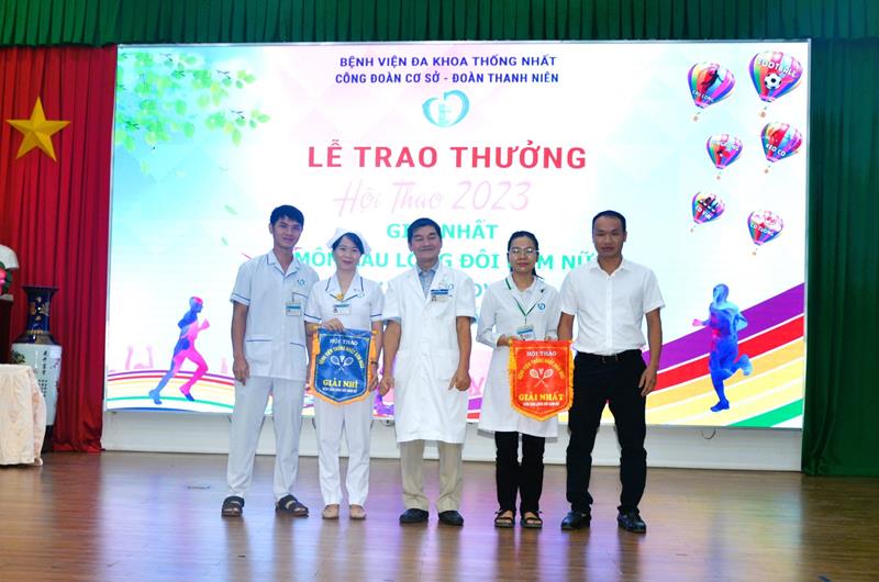 Lãnh đạo Bệnh viện Đa khoa Thống Nhất trao giải Nhất bộ môn cầu lông đôi nam nữ cho cán bộ, nhân viên y tế