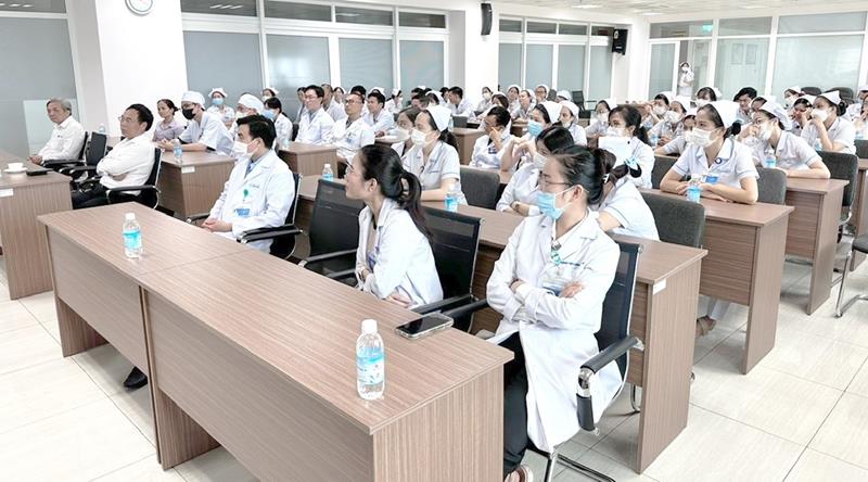 Đông đảo cán bộ, y, bác sĩ của bệnh viện tham gia buổi đào tạo