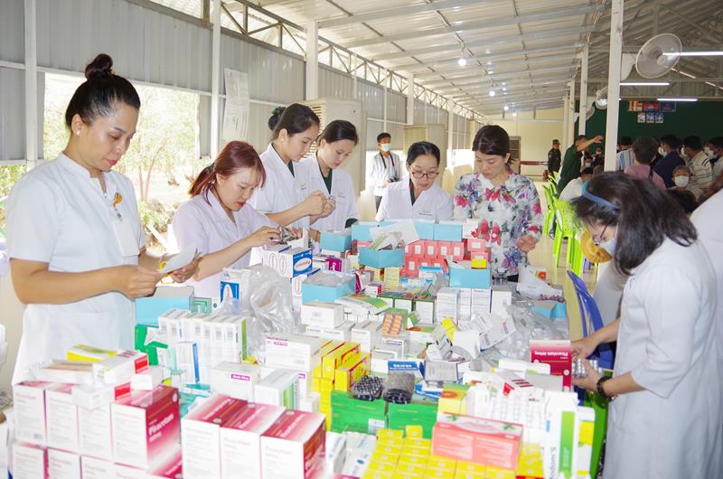 Trong đợt công tác này, có 30 bác sĩ, điều dưỡng, nhân viên y tế thực hiện khám các chuyên khoa: ngoại tổng quát, siêu âm, răng - hàm - mặt, tai - mũi - họng, da liễu, tim mạch, xương khớp, tiêu hóa. Ngoài được khám bệnh, cấp thuốc, mỗi người dân còn được tặng quà trị giá 300 ngàn đồng/phần.