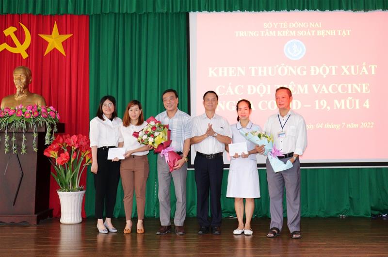 Lãnh đạo Trung tâm Kiểm soát bệnh tật tỉnh khen thưởng đột xuất các đội tiêm vaccine