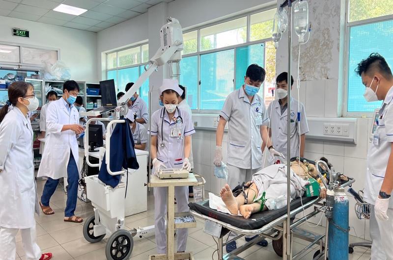 Ngay lập tức, bệnh viện đã bật báo động đỏ, Ban Giám đốc đã huy động y, bác sĩ các khoa: Ngoại, chấn thương chỉnh hình - bỏng, Ngoại tổng quát, Ngoại niệu, Sản, Ngoại lồng ngực - tim mạch, Phẫu thuật gây mê hồi sức khẩn trương hội chẩn, mổ cấp cứu bệnh nhân.