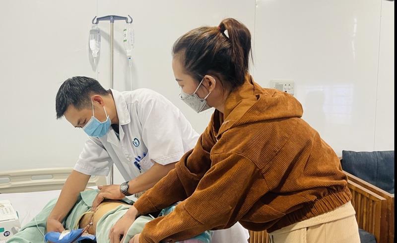 Bác sĩ kiểm tra sức khỏe và vết mổ cho bệnh nhân